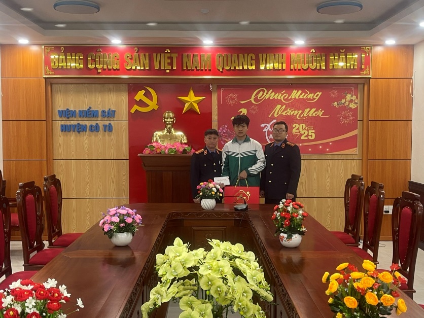 Sáng ngày 24/01/2025, nhân dịp Tết Nguyên đán Ất Tỵ 2025, Viện Kiểm sát nhân dân huyện Cô Tô đã tổ chức gặp mặt tặng quà cho cháu Trần Hữu Đức (sinh năm 2010; trú tại: xã Đồng Tiến, huyện Cô Tô), là học sinh nghèo vượt khó, được Viện Kiểm sát nhân dân huyện…