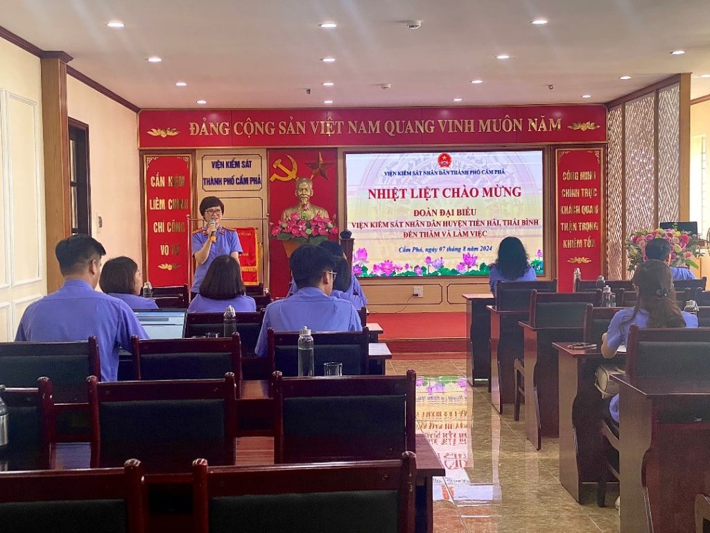 Nhằm tăng cường mối quan hệ đoàn kết, học hỏi, trao đổi kinh nghiệm để cùng thực hiện tốt khâu công tác đột phá về chuyển đổi số, trong tháng 8/2024, VKSND thành phố Cẩm Phả đã tổ chức Toạ đàm trao đổi, học hỏi kinh nghiệm với Đoàn công tác của VKSND huyện Tiền…