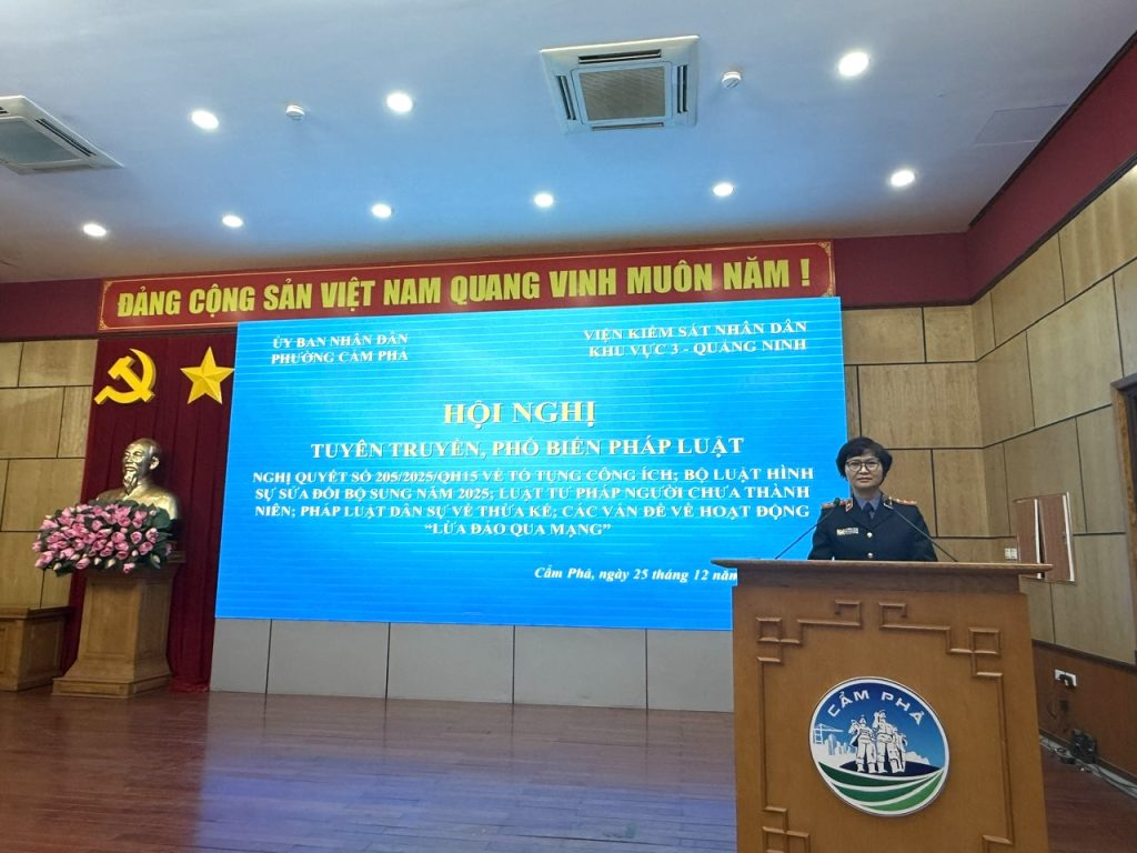 Trong các ngày 24 và 25/12/2025, Viện kiểm sát nhân dân khu vực 3 – Quảng Ninh phối hợp với UBND phường Quang Hanh, UBND phường Cẩm Phả tổ chức Hội nghị tuyên truyền, phổ biến pháp luật trên địa bàn. Các hội nghị đã thu hút hơn 400 người nghe gồm: đội ngũ cán…