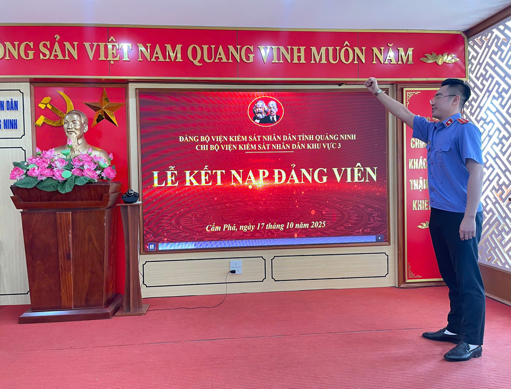 Được sự nhất trí của Đảng ủy Cơ quan Viện KSND tỉnh Quảng Ninh, sáng ngày 17/10/2025, Chi bộ Viện kiểm sát nhân dân khu vực 3 đã tổ chức Lễ kết nạp đảng viên cho quần chúng ưu tú Trịnh Đình Minh. Tham dự buổi Lễ có đồng chí Đinh Quốc Hùng –Bí thư…