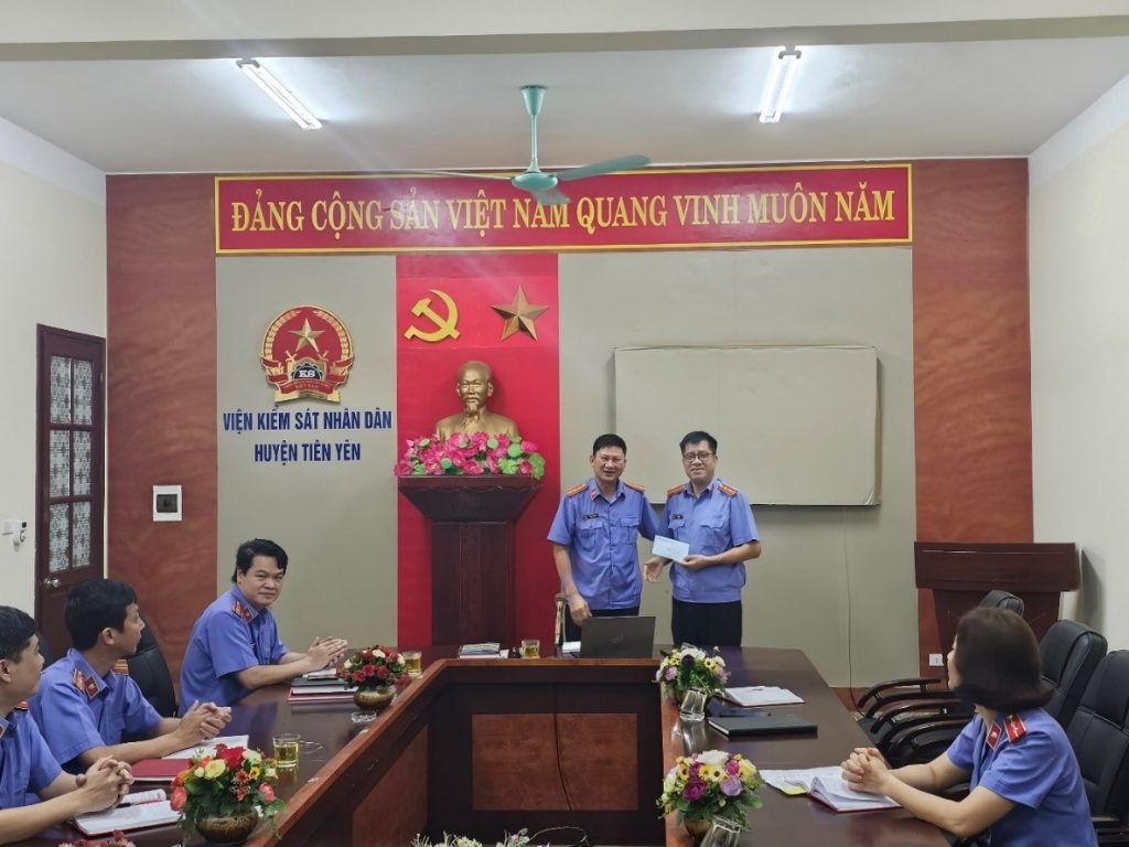 Sáng ngày 06/5/2024, tại hội trường Viện kiểm sát nhân dân huyện Tiên Yên, đồng chí Phạm Công Đông – Bí thư chi bộ Viện kiểm sát nhân dân huyện Tiên Yên đã khen thưởng đột xuất đối với đồng chí Tô Mạnh Cử – Phó Viện trưởng về thành tích đạt giải Ba trong…