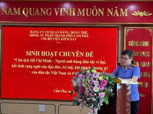 Nhân dịp kỷ niệm 135 năm ngày sinh Chủ tịch Hồ Chí Minh (19/5/1890 – 19/5/2025), ngày 19/5/2025, Chi bộ Viện kiểm sát nhân dân thành phố Cẩm Phả tổ chức sinh hoạt chuyên đề “Chủ tịch Hồ Chí Minh – Người anh hùng dân tộc vĩ đại, kết tinh rạng ngời của đạo đức, trí tuệ, khí phách, lương tri của dân tộc Việt Nam và thời đại”, gắn với quy định về ứng xử và văn hóa công vụ trong ngành Kiểm sát nhân dân, với sự tham gia của toàn thể đảng viên, quần chúng trong chi bộ và lãnh đạo một số đơn vị trong khối nội chính.