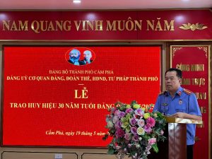 Cùng ngày, Đảng bộ cơ quan Đảng, đoàn thể, HĐND, tư pháp Thành phố long trọng tổ chức lễ trao huy hiệu 30 năm tuổi đảng cho đồng chí Đinh Quốc Hùng – Đảng ủy viên, Bí thư Chi bộ, Viện trưởng Viện KSND thành phố Cẩm Phả.