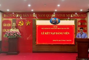 Thực hiện Quyết định số 1239-QĐ/TU ngày 08/11/2024 của Ban Thường vụ Thị uỷ Quảng Yên. Ngày 22/11/2024, Chi bộ VKSND thị xã Quảng Yên tổ chức Lễ kết nạp Đảng viên mới đối với quần chúng Đoàn Trung Sơn.