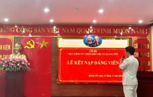 Bồi dưỡng, kết nạp đảng viên mới là nhiệm vụ thường xuyên được Chi bộ VKSND thị xã Quảng Yên rất quan tâm. Đồng chí Bí thư Chi bộ tin tưởng Đảng viên mới sẽ không ngừng học tập, rèn luyện nâng cao trình độ chuyên môn, năng lực công tác, phẩm chất chính trị; tích cực đấu tranh chống chủ nghĩa cá nhân, quan liêu, tham nhũng, góp phần xây dựng Chi bộ trong sạch, vững mạnh.