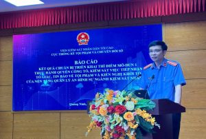 Cũng tại Hội nghị, đồng chí Chánh Văn phòng Viện KSND tỉnh Quảng Ninh đã báo cáo cụ thể các kết quả đã đạt được của Viện KSND 2 cấp tỉnh Quảng Ninh, cũng như tổng hợp các khó khăn, vướng mắc, về thực hiện lắp đặt cơ sở hạ tầng – kỹ thuật đảm bảo an toàn thông tin, về nguồn nhân lực và kết quả tập huấn triển khai thí điểm Mô – đun 1. Qua rà soát số liệu tin báo, tố giác về tội phạm và kiến nghị khởi tố thụ lý từ 01/10/2024 đến nay của VKSND hai cấp là hơn 1400 hồ sơ; do đó khối lượng nhập liệu rất nhiều. Từ đó đã xây dựng Kế hoạch cụ thể hoá, phân công cụ thể, khoán chỉ tiêu và thời gian hoàn thành nhập liệu cho từng đơn vị, đến từng Kiểm sát viên.