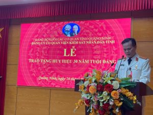 Hướng tới kỷ niệm 95 năm Ngày thành lập Đảng cộng sản Việt Nam (03/02/1930– 03/02/2025), sáng ngày 20/01/2025, Đảng ủy cơ quan Viện kiểm sát nhân dân tỉnh Quảng Ninh tổ chức Lễ trao Huy hiệu 30 năm tuổi Đảng cho đồng chí Trương Văn Hậu – Phó Trưởng phòng Tổ chức cán bộ, đảng viên Chi bộ 15.