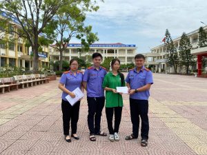 03 học sinh được thăm hỏi, tặng quà dịp này là cháu Vũ Thị Thu Huyền – sinh năm 2007, trú tại Khu 1, phường Phong Cốc; cháu Bùi Đức Xuân Cảnh – sinh năm 2011, trú tại Khu 9, phường Hà An và cháu Đinh Đức Trọng – sinh năm 2012, trú tại Khu 9, phường Quảng Yên – đều thuộc địa bàn thị xã Quảng Yên, tỉnh Quảng Ninh. Trong đó, cháu Vũ Thị Thu Huyền được Công đoàn Viện kiểm sát nhân dân thị xã Quảng Yên đã nhận đỡ đầu với mức hỗ trợ 500.000 đồng/tháng, cho đến khi cháu đủ 18 tuổi.