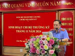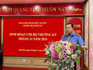 Ngày 04/11/2024, Chi bộ viện kiểm sát nhân dân thành phố Cẩm Phả tổ chức sinh hoạt chi bộ thường kỳ tháng 11/2024. Dự và chỉ đạo buổi sinh hoạt có đồng chí Nguyễn Xuân Hải – Chánh Văn phòng Ban Tổ chức Tỉnh ủy tỉnh Quảng Ninh.