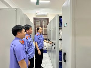 Đồng chí Phạm Viết Vượng thăm kho lưu trữ hồ sơ, tài liệu của VKSND khu vực 2