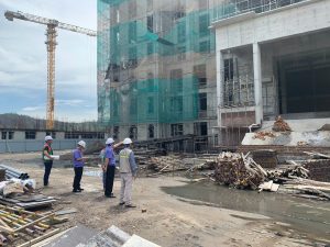 Đồng chí Phạm Viết Vượng kiểm tra tiến độ thi công tại công trình trụ sở VKSND tỉnh Quảng Ninh tại phường Bãi Cháy