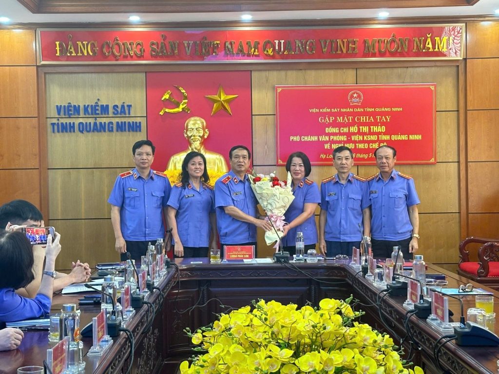 Ngày 26/5/2025, tại trụ sở cơ quan VKSND tỉnh Quảng Ninh, Lãnh đạo Viện kiểm sát nhân dân tỉnh tổ chức gặp mặt, chia tay đồng chí Hồ Thị Thảo – Phó Chánh Văn phòng nghỉ hưu theo chế độ. Đồng chí Lương Phúc Sơn – Tỉnh uỷ viên, Bí thư Đảng uỷ, Viện trưởng…