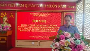 Phát biểu tại buổi sinh hoạt, đồng chí Đinh Quốc Hùng – Thành ủy viên, Bí thư Chi bộ nhấn mạnh: Toàn thể đảng viên của Chi bộ cần tiếp tục nghiên cứu sâu sắc các nội dung của chuyên đề, không ngừng học tập và làm theo tấm gương của Bác; chấp hành nghiêm kỷ luật, kỷ cương trong thực thi nhiệm vụ, công vụ; đề cao trách nhiệm của người đứng đầu cơ quan, đơn vị trong thực hiện văn hóa công vụ, nâng cao ý thức trách nhiệm trong công tác phòng, chống tham nhũng, lãng phí và các biểu hiện tiêu cực khác. Đây là cơ sở để giám sát, đánh giá về đạo đức, ứng xử của cán bộ, công chức, người lao động; là một trong những căn cứ để cơ quan, đơn vị xem xét, quyết định việc đánh giá, xếp loại chất lượng công chức, người lao động và khen thưởng, kỷ luật theo quy định của pháp luật, của ngành Kiểm sát nhân dân. Đồng thời, góp phần xây dựng hình ảnh tốt đẹp về cán bộ, công chức, viên chức và người lao động ngành Kiểm sát nhân dân; xây dựng môi trường công vụ văn minh, chuyên nghiệp, hiện đại; nâng cao hiệu lực, hiệu quả hoạt động của ngành Kiểm sát nhân dân.