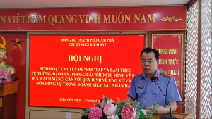 Hướng tới kỷ niệm 134 năm ngày sinh nhật Bác (19/5/1890 – 19/5/2024), ngày 17/5/2024, Chi bộ Viện kiểm sát nhân dân thành phố Cẩm Phả tổ chức sinh hoạt chuyên đề học tập và làm theo tư tưởng, đạo đức, phong cách Hồ Chí Minh, gắn với quy định về ứng xử và văn hóa công vụ trong ngành Kiểm sát nhân dân, với sự tham gia của toàn thể đảng viên, quần chúng trong chi bộ.