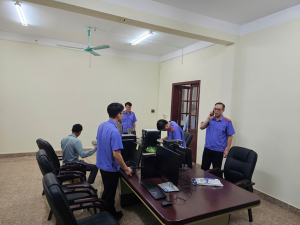Tổ công nghệ Viện kiểm sát nhân dân huyện Tiên Yên tiến hành lắp đặt trang thiết bị phục vụ cho công tác nhập liệu