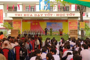 Tham dự chương trình có đồng chí Trung tá Nguyễn Hồng Điệp – Phó Chánh Văn phòng Cơ quan Cảnh sát điều tra Công an tỉnh Quảng Ninh; đồng chí Đỗ Thị Thúy- Chi ủy viên, Trưởng Ban Nữ công VKSND Khu vực 1 cùng các đồng chí cán bộ của hai đơn vị. Về phía nhà trường có đồng chí Hoàng Thị Hải Yến- Bí thư Chi bộ, Hiệu trưởng nhà trường cùng các thầy, cô giáo và các em học sinh.