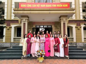 Nữ cán bộ công chức của hai đơn vị duyên dáng bên tà áo dài