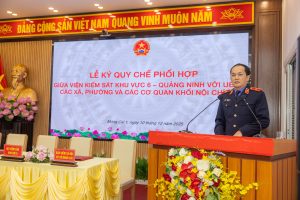 Nhằm thực hiện chức năng, nhiệm vụ của Viện kiểm sát nhân dân, ngày 10/12/2025, Viện kiểm sát nhân dân khu vực 6, Quảng Ninh tổ chức Lễ ký Quy chế phối hợp với 10 Ủy ban nhân dân (UBND) xã, phường, Đồn Biên phòng, Hải quan, Hạt kiểm lâm, Đội quản lý thị trường, Thuế, Bảo hiểm xã hội trên địa bàn. Đồng chí Phạm Viết Vượng – Viện trưởng Viện kiểm sát nhân dân tỉnh Quảng Ninh dự và chỉ đạo Hội nghị.
