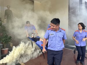 Nhằm thực hiện tốt công tác phòng cháy và chữa cháy (PCCC) theo quy định của Luật phòng cháy, chữa cháy và nâng cao sự phối hợp chỉ huy về chiến thuật, kỹ thuật chữa cháy và cứu nạn, cứu hộ (CNCH) giữa lực lượng chữa cháy chuyên nghiệp với lực lượng chữa cháy ở cơ sở, ngày 22/5/2024, Viện kiểm sát nhân dân (VKSND) tỉnh Quảng Ninh phối hợp với Phòng Cảnh sát PCCC, Công an tỉnh Quảng Ninh tổ chức diễn tập phòng cháy chữa cháy và cứu nạn, cứu hộ tại Viện kiểm sát tỉnh. Đồng chí Nguyễn Văn Minh – Phó Viện trưởng VKSND tỉnh Quảng Ninh dự và chỉ đạo buổi diễn tập.