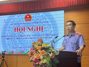 Ngày 10/7/2024, Viện kiểm sát nhân dân tỉnh Quảng Ninh tổi chức Hội nghị sơ kết công tác 6 tháng đầu năm và triển khai nhiệm vụ trọng tâm 6 tháng cuối năm 2024. Dự và chỉ đạo Hội nghị có đồng chí Lương Phúc Sơn – Tỉnh ủy viên, Bí thư Ban Cán sự Đảng, Viện trưởng VKSND tỉnh Quảng Ninh; các đồng chí Phó Viện trưởng VKS tỉnh, các đồng chí Trưởng phòng nghiệp vụ, Viện trưởng VKS cấp huyện và toàn thể cán bộ, công chức ngành Kiểm sát Quảng Ninh.