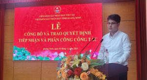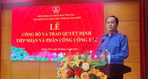 Phát biểu giao nhiệm vụ tại lễ công bố quyết định, đồng chí Phạm Viết Vượng – Viện trưởng VKSND tỉnh Quảng Ninh chúc mừng 12 ứng viên đã cố gắng, nỗ lực vượt qua kỳ thi tuyển công chức và chính thức trở thành công chức của Ngành kiểm sát Quảng Ninh. Đồng chí nhấn mạnh những yêu cầu cơ bản mà mỗi cán bộ mới cần nắm vững và thực hiện nghiêm túc trong quá trình công tác, cụ thể: Mỗi cán bộ phải xây dựng kế hoạch học tập, rèn luyện lâu dài nhằm nâng cao trình độ chuyên môn, đáp ứng yêu cầu nhiệm vụ trong giai đoạn mới. Đồng chí cũng mong các công chức vận dụng linh hoạt kiến thức lý luận đã học vào thực tiễn công tác, “học đi đôi với hành”, đồng thời tiếp tục đúc rút từ thực tiễn để làm phong phú thêm nền tảng lý luận của bản thân. Trong giai đoạn hiện nay, cán bộ công chức trẻ còn phải là những hạt nhân đi đầu trong công cuộc chuyển đổi số, góp phần xây dựng Ngành Kiếm sát nhân dân chuyên nghiệp, hiện đại. Mỗi cán bộ kiểm sát cần nỗ lực rèn luyện theo lời dạy của Chủ tịch Hồ Chí Minh: “Công minh, chính trực, khách quan, thận trọng, khiêm tốn” và phấn đấu trở thành đảng viên Đảng Cộng sản Việt Nam.