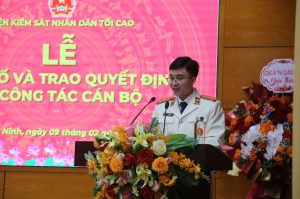 Chiều ngày 09/02/2026, tại trụ sở Viện kiểm sát nhân dân (VKSND) tỉnh Quảng Ninh, VKSND tối cao tổ chức Lễ công bố và trao Quyết định bổ nhiệm chức vụ Phó Viện trưởng VKSND tỉnh Quảng Ninh đối với đồng chí Vũ Đức Ninh. Đồng chí Nguyễn Duy Giảng, Ủy viên Ban Thường vụ Đảng ủy, Phó Viện trưởng VKSND tối cao dự và chỉ đạo buổi lễ.