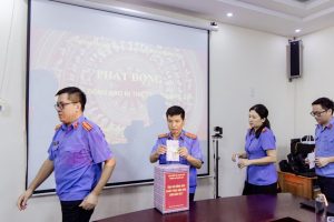 Công chức, người lao động VKSND thành phố Móng Cái tham gia quyên góp, ủng hộ