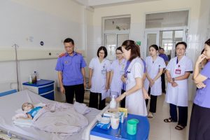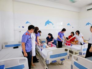 Đồng chí Lương Anh Thủy – Phó Viện trưởng VKSND thành phố Móng Cái thăm gặp và tặng quà cho các bệnh nhi