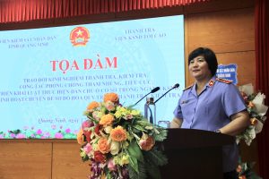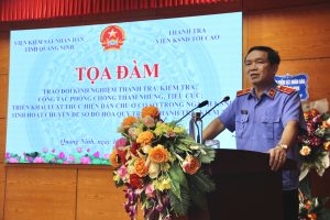 Tại Hội nghị, đồng chí Lương Phúc Sơn – Viện trưởng VKSND tỉnh Quảng Ninh xác định công tác phòng, chống tham nhũng, tiêu cực nói chung và phòng, chống tham nhũng, tiêu cực trong nội bộ ngành KSND là việc hết sức quan trọng, được Đảng, Nhà nước và các cấp, các ngành quan tâm. Để mỗi cán bộ hiểu rõ hơn tầm quan trọng của công tác này rất cần thiết có những buổi toạ đàm, trao đổi giữa các cấp. Đại diện cho VKSND tỉnh Quảng Ninh, đồng chí Đặng Đình Vang – Phó Viện trưởng VKS tỉnh đã báo cáo tóm tắt kết quả công tác kiểm tra phòng, chống tham nhũng, tiêu cực trong ngành Kiểm sát Quảng Ninh. Đồng chí đặc biệt nhấn mạnh, hoạt động thanh tra, kiểm tra luôn phải được chú trọng, góp phần thực hiện có hiệu quả các quy định về kiểm soát quyền lực, phòng, chống tham nhũng, tiêu cực.
