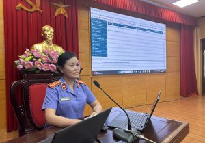 Đồng chí Nguyễn Mai Thuý – Phó Viện trưởng VKSND tỉnh Quảng Ninh trực tiếp thực hành phần xử lý văn bản và ký số trên phần mềm