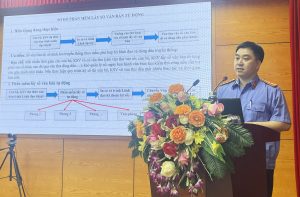 Đồng chí Lưu Văn Hưng – Chánh Văn phòng VKS tỉnh thuyết trình về phần mềm “quản lý số văn bản tự động”
