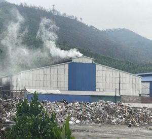 Tổ công tác làm việc tại nhà máy xử lý rác thải Khe Giang