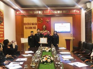 Đồng chí Nguyễn Văn Minh- Phó Viện trưởng VKSND tỉnh Quảng Ninh trao tặng Bằng khen của UBND tỉnh cho tập thể lãnh đạo VKSND thị xã Đông Triều