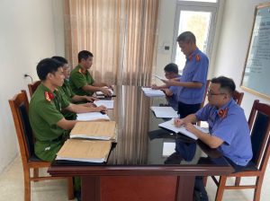 Đoàn công tác của VKSND huyện Cô Tô trong một buổi trực tiếp kiểm sát tại Cơ quan điều tra